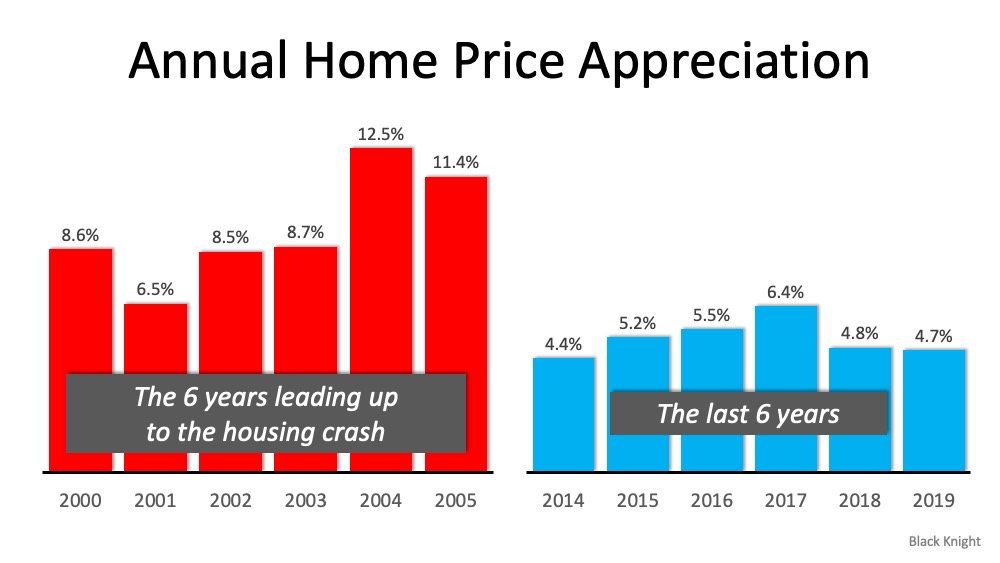 Below is a graph showing annual house appreciation over the past six years, compared to the six years leading up to the height of the housing bubble. Though price appreciation has been quite strong recently, it is nowhere near the rise in prices that preceded the crash.5 Simple Graphs Proving This Is NOT Like the Last Time | Simplifying The MarketThere’s a stark difference between these two periods of time. Normal appreciation is 3.6%, so while current appreciation is higher than the historic norm, it’s certainly not accelerating beyond control as it did in the early 2000s.