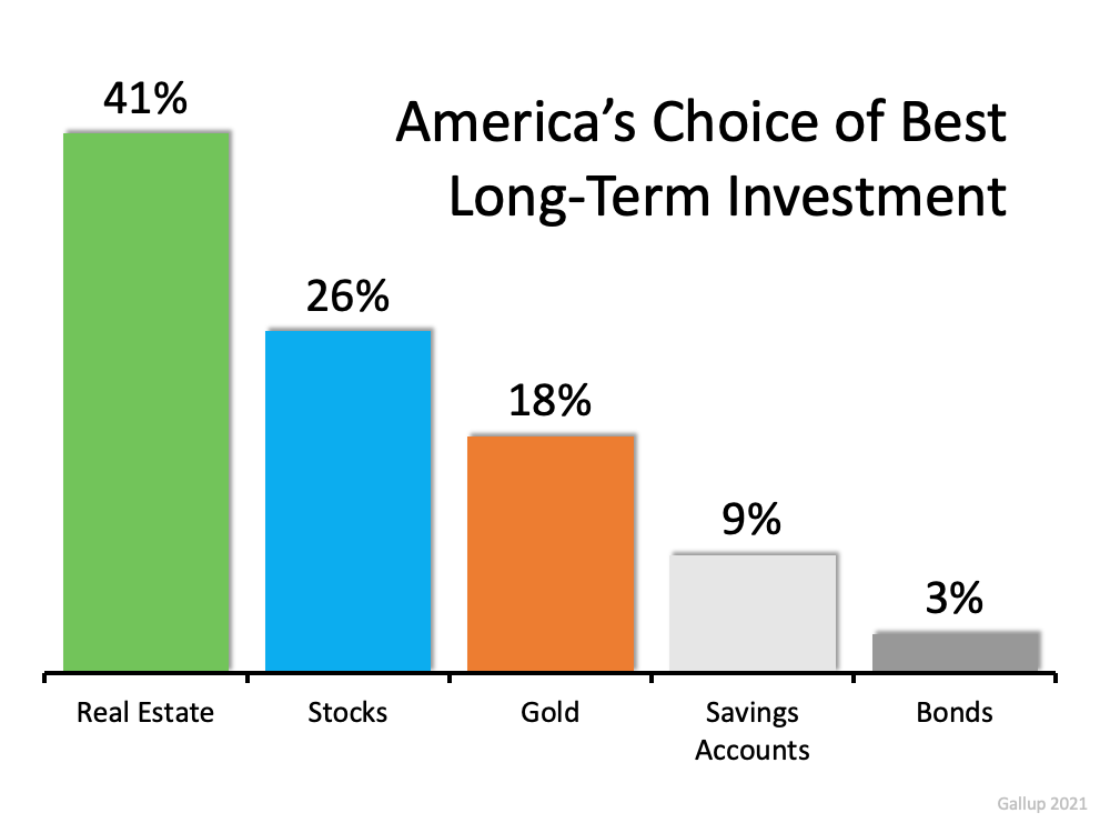 “Gallup usually finds that Americans regard real estate as the best long-term investment among several options — seeing it as superior to stocks, gold, savings accounts and bonds. This year, 41% choose real estate as the best investment, up from 35% a year ago, with stocks a distant second.”