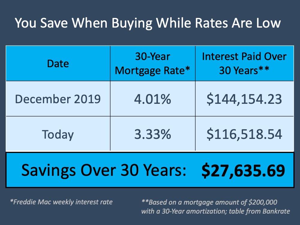 3. Buyers understand that mortgage rates are a key component when determining their monthly mortgage payments. Mortgage interest rates are very close to all-time lows and afford today’s purchaser the opportunity to save tens of thousands of dollars over the lifetime of the loan.