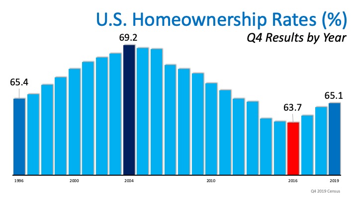 Regardless of the lack of inventory on the market, the U.S. homeownership rate has climbed to a 6-year high. The United States Census Bureau reported that it increased to 65.1% in the fourth quarter of 2019, representing the highest level in the past six years. See the graph below: