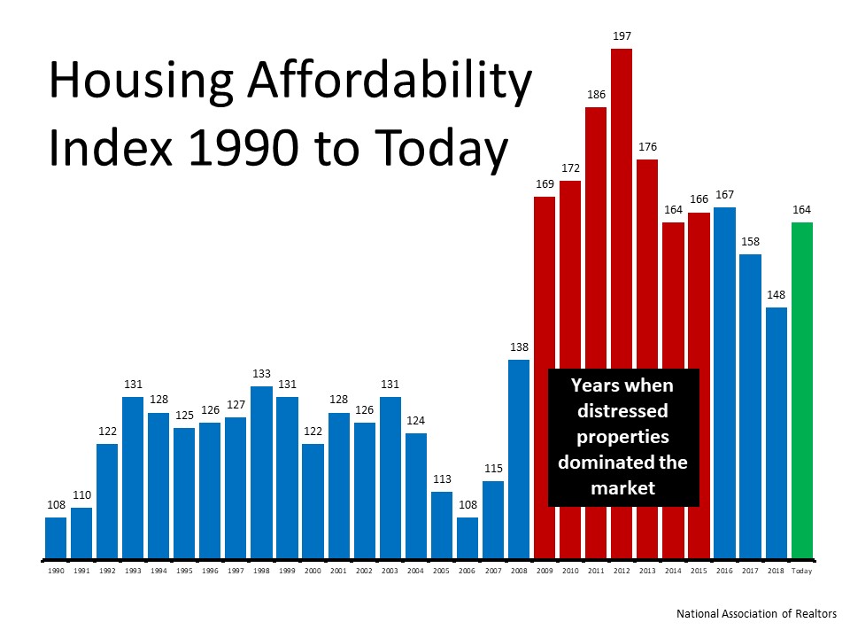 The National Association of Realtors (NAR) releases a monthly Housing Affordability Index. The latest index shows that home affordability is better today than at almost any point over the last 30 years. The index determines how affordable homes are based on the following:
