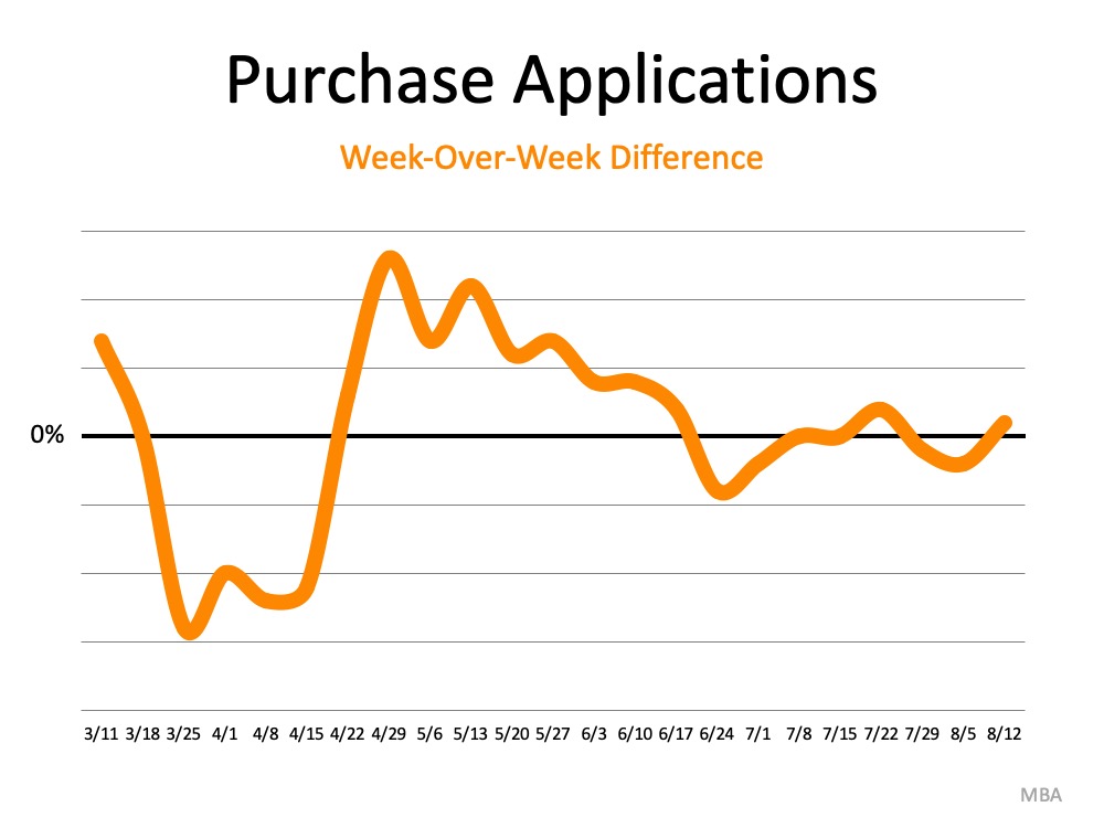 The number of buyers getting a mortgage to purchase a home is a strong indicator of the strength of a housing market. Below is a graph of the week-over-week percent change in that number, as reported by the Mortgage Bankers’ Association: