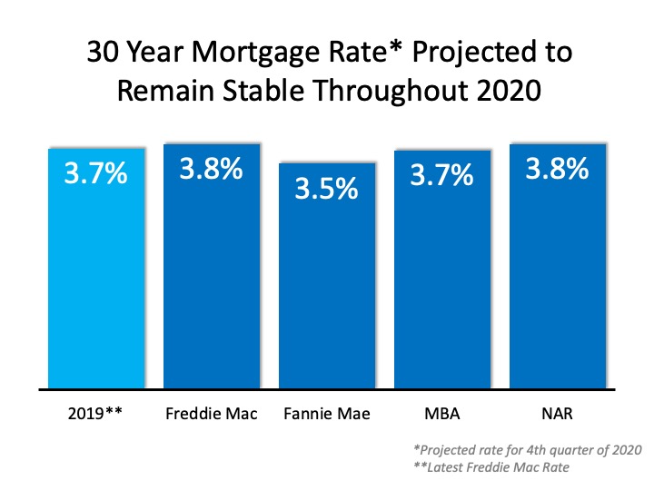 Projections from the experts at the National Association of Realtors (NAR), the Mortgage Bankers Association (MBA), Fannie Mae, and Freddie Mac all forecast mortgage rates remaining stable throughout 2020: