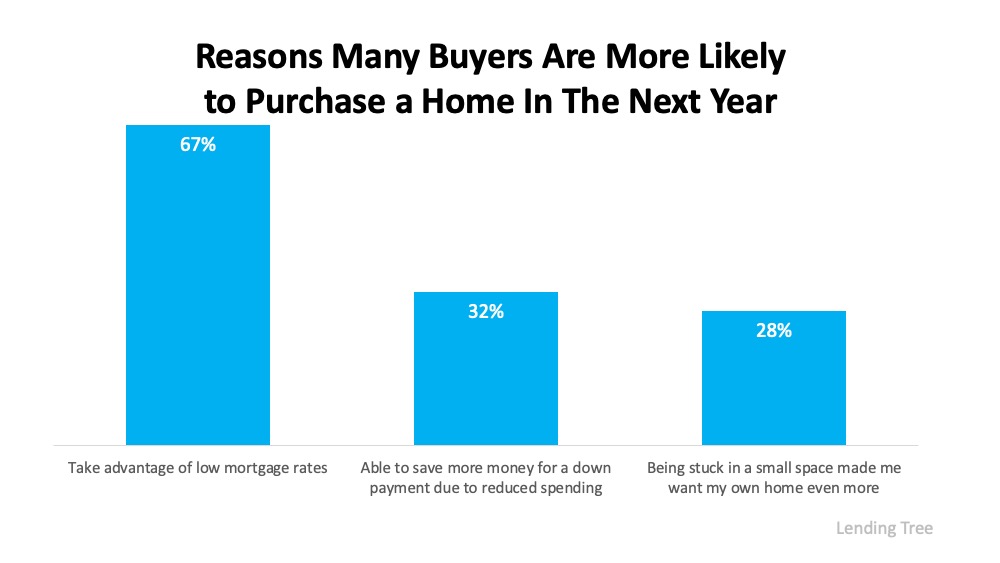 A recent survey by Lending Tree tapped into behaviors of over 1,000 prospective buyers. The results indicated 53% of all homebuyers are more likely to buy a home in the next year, even amid the current health crisis. The survey further revealed why, naming several reasons buyers are more likely to move this year (see graph below):